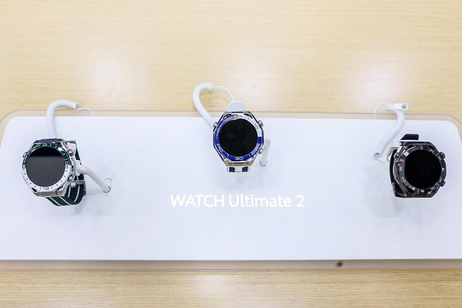 穿戴产品专桌与智慧办公专桌则聚焦于个人健康与移动生产力。HUAWEI WATCH Ultimate 2不仅融合了专业运动监测与高端材质工艺,更是一款支持20 ATM防水等级(最大潜水深度150米)与双向北斗卫星消息的专业设备。其搭载的纳米微晶陶瓷材质与多种专业传感器,能为用户更好的提供从日常健康管理到户外探险的全场景守护,成为腕上可靠的健康管家与安全伙伴;HUAWEI MateBook Fold 非凡大师则以其独特的折叠形态与澎湃性能,重新定义了高端商务笔记本的形态,与手机、平板共同构成了无缝协同的移动办公生态。此外,HUAWEI FreeClip 2等音频产品,凭借开放式设计与智能音频切换技术,为用户所带来了全天候舒适佩戴与全场景声效随行的听觉体验。